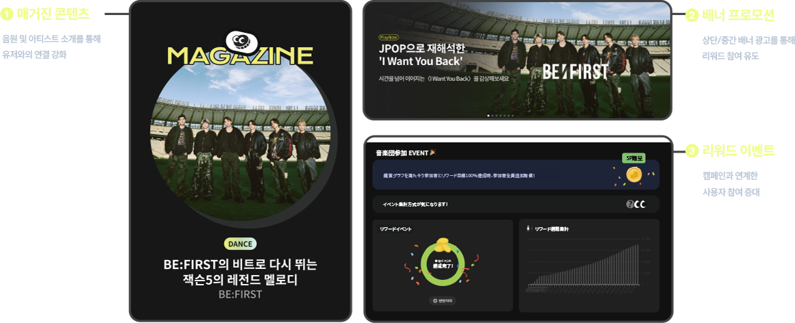 아티스트의 음악을 100% 청취하면 감상자에게 리워드 포인트를 제공하는 서비스로