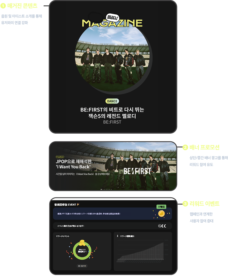 리워드로 음악을 끝까지 감상하고,
